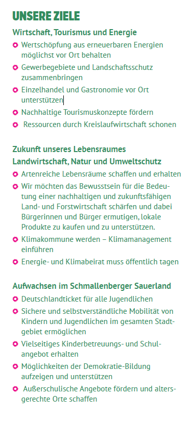 Ortsverband Bündnis 90/Die Grünen 57392 Schmallenberg Mail: ov(at)gruene-schmallenberg.com